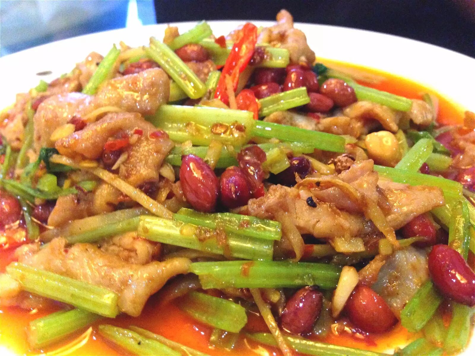 小炒的优势在于油温高,熟得快,“肝片下锅十八铲”,是其中的一个典型。不过,熟得快也就意味着调料往食材中扩散的时间短——味道,也就不大容易“入”到食材中。不过,人的舌头尝到味道也并不需要非“入味”不可,只要是附着到食材上就足够了——辣椒和花椒的香味物质都很容易溶出到油中,油再吸附到食材表面,食材也就具有了丰富的味道。所以,小炒的关键是:油足够多,食材切得大小适中。