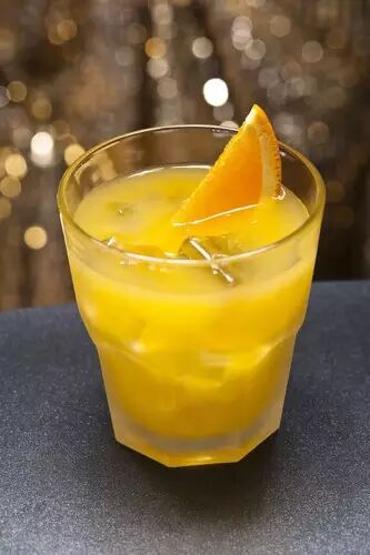 伏特加40ml,当姆香草利口酒10ml,柠檬汁1吧勺,橙汁1吧勺,摇晃法,古典杯,橙片装饰。