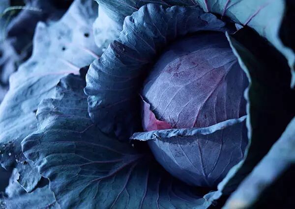 卷心菜有一位小姊妹,它就是紫甘蓝,也叫做紫包菜。紫甘蓝和卷心菜其实完全一样,唯一的区别就是叶球是紫红色的——这是由于它富含紫色的花青素。所以,如果用紫甘蓝做泡菜,会发现紫甘蓝褪色了,因为花青素易溶于酸性溶液。
