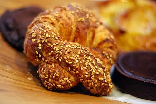 1997:City Bakery的一位面点师Maury Rubin开发出了撒满了芝麻的椒盐卷牛角包,它结合了椒盐卷饼Pretzel和牛角面包的共同点。在纽约的City Bakery,这款牛角包每日平均可以卖出500个,而在大阪的City Bakery,每人限购两个的Pretzel Croissant每天可以卖出1200个。