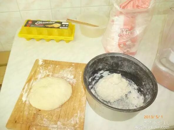 第二步和面,经验就是一边加水一边和,放在一个盆中和,最后达到的效果就是盆里没有一点面,全都揉到面团中,面团不宜和得太硬,适中最好,然后把面团用盆扣起来,醒一会儿,这期间可以炒鸡蛋碎了,把鸡蛋打散,加少量花椒面去腥,然后在锅内加少许油,油温高了,放入蛋液,用筷子迅速搅动,鸡蛋自然变成了鸡蛋碎。