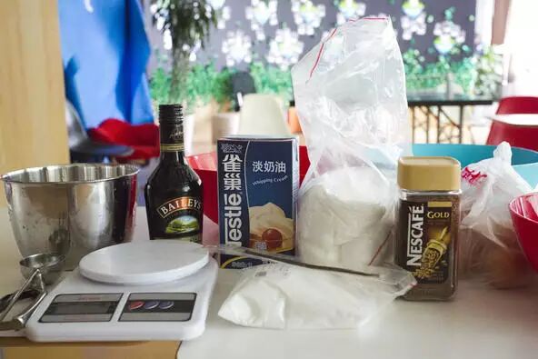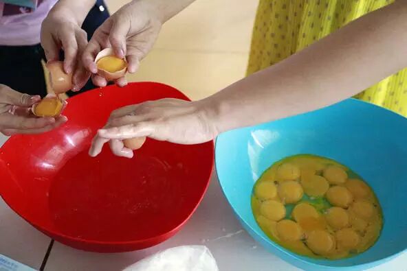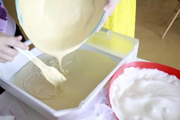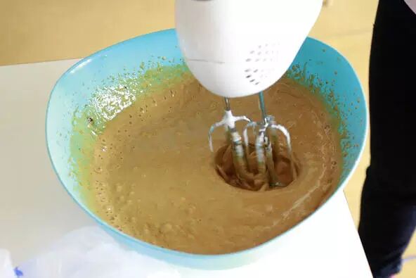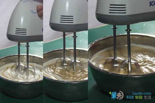 原料放齐后,手动或是用电动打蛋器搅匀。