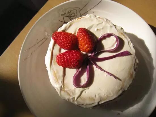PS:不同电饭锅效果不同,每次加入面糊的量酌情把握,建议少加,厚度2cm左右,以免底面糊了表面却没熟。我这货就是因为糊了所以才抹上淡奶油遮丑的。