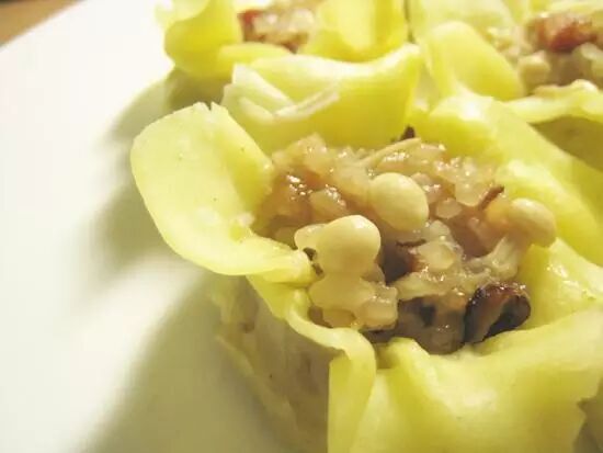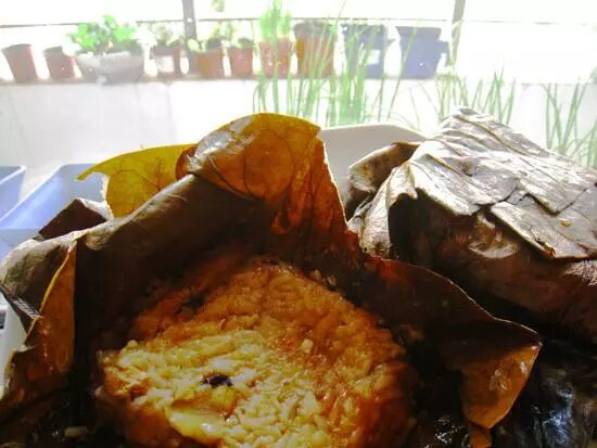 糯米鸡:栗子+香菇+鸡肉+糯米,栗子刚刚熟时的味道最清新!关于是全生包好再蒸熟还是糯米生鸡肉熟再一起蒸熟或者糯米熟鸡肉生再蒸熟没定论。喜欢怎样就怎样。我三种都试过了,觉得全熟再蒸最省力。谁让我电饭锅太迷你。