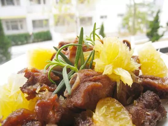 糖醋排骨:偶尔会加一些味道酸甜的水果进去。酸酸甜甜的好合我味。排骨我会用水焯好一遍后再炒,这样焯制过程可以除油,再炒时也不用放很多油,还能减少 炒制的时间。吃货也要爱科学!排骨剁成小块,加点生姜和料酒以及水小火煮沸。捞出排骨,往热锅里加点油倒入排骨焖一下,再倒入调好的酱汁(糖+醋+酱 油),把汁收干即可。勾不勾芡随意。
