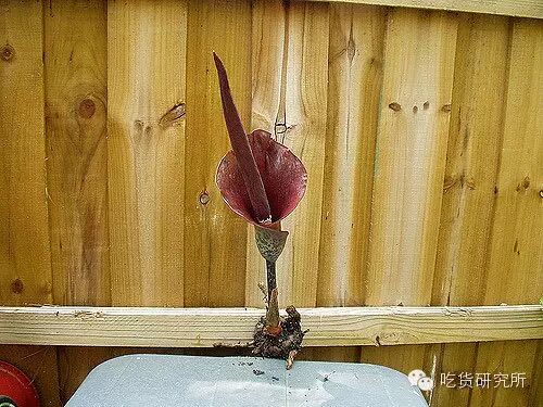 当魔芋块茎中积累了足够营养,叶子就凋萎,然后长出花序