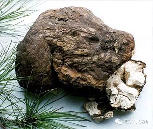 茯苓则是多孔菌科的一种大型真菌,寄生在红松的根部。用来制作龟苓膏的是茯苓的菌核,即菌丝和营养物质聚集成的休眠体,并不是蘑菇、灵芝那样用来繁殖的子实体。茯苓的菌丝吸收树根和周围的营养生长,形成菌核,菌核发育到一定程度就会露出地表,生出许多白色蜂窝状的子实体,子实体释放孢子后发育成菌丝体,继续新一轮的生活史。