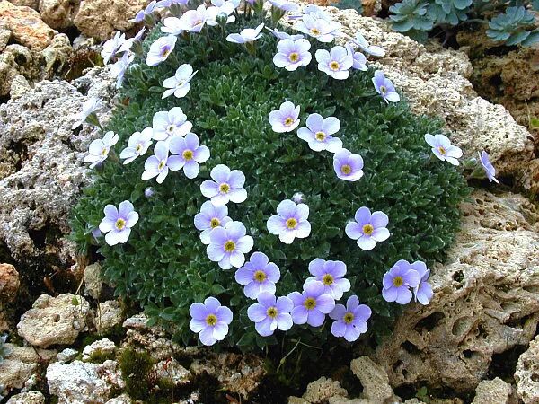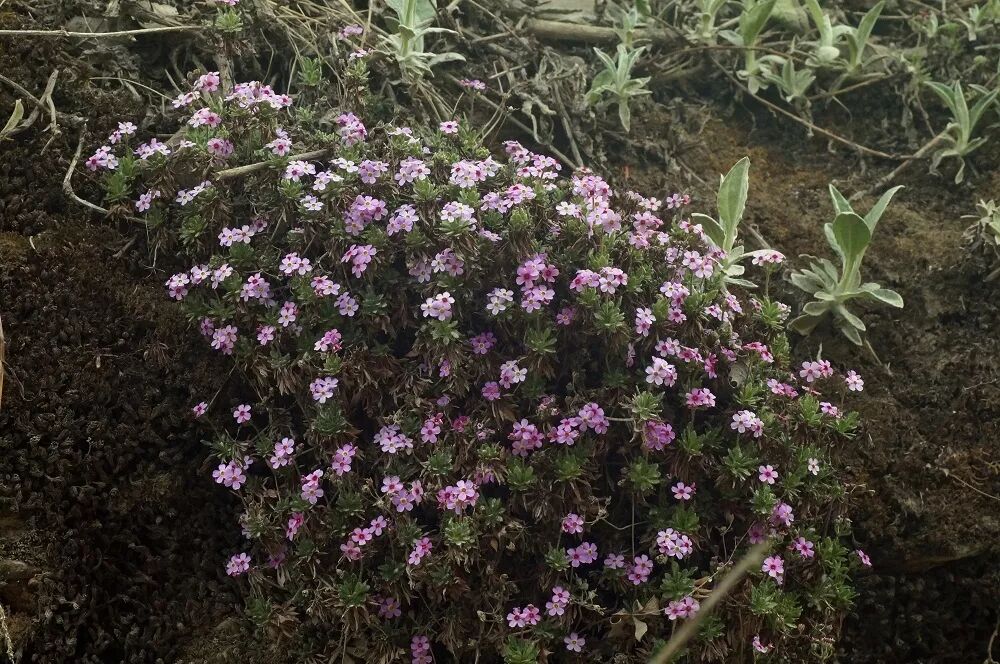 还有一些点地梅长成了切糕一样的垫状植株,比如名气最大的垫状点地梅(A. tapete)。不过垫状植株并不是垫状点地梅的专利,高山组(Sect. Chamaejasme)的许多成员都能长成类似的“切糕”,比如阿拉善点地梅(A. alaschanica)、滇西北点地梅(A. delavayi)等等——“组”是属下划分的一个等级,高山组顾名思义,几乎都生长在高海拔地区。