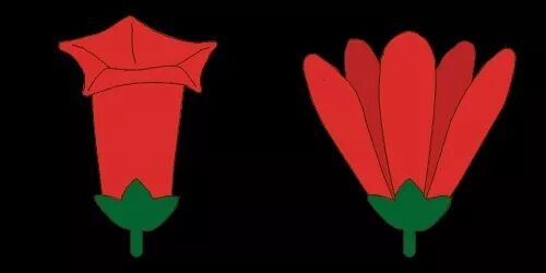 示意图:合瓣花和离瓣花。图片:Michael G. Simpson / Wikimedia Commons