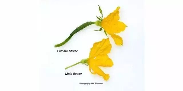 和葫芦科的其他植物,比如南瓜、西瓜、丝瓜、冬瓜、葫芦一样,黄瓜的雌花会自带一个没有开始发育的小瓜,而雄花就是光溜溜的一朵花。