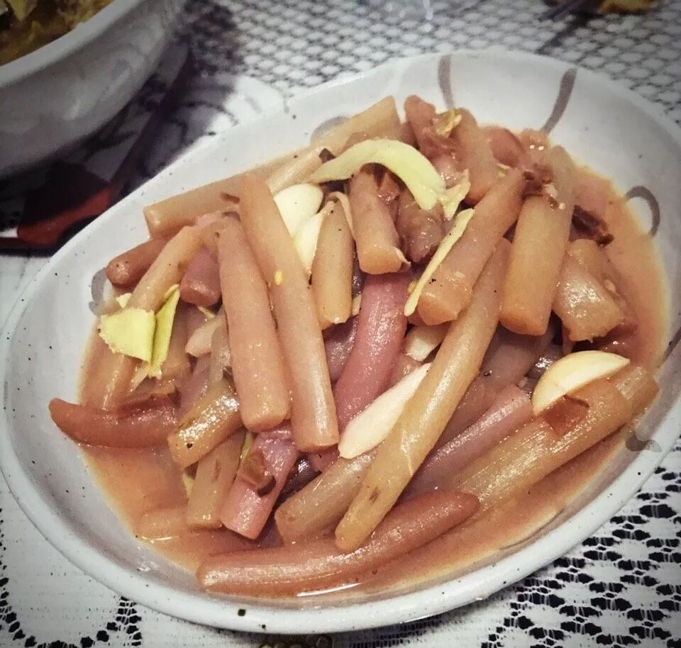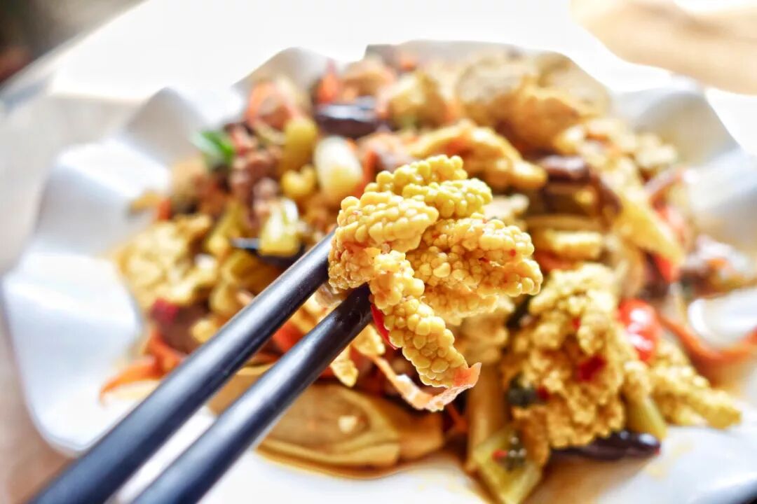这种花萼形状和鸡胗十分相像,当地人一般会在他们干枯凋谢前将其摘下,焯水清洗后像鸡胗一样爆炒,之后就可以端上餐桌了。