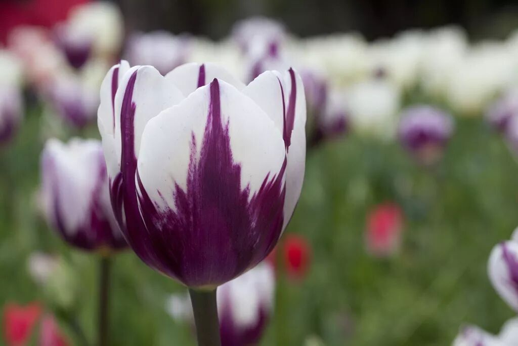 白底紫纹的郁金香。图片:alcidesota@yahoo.com-O / Flickr
