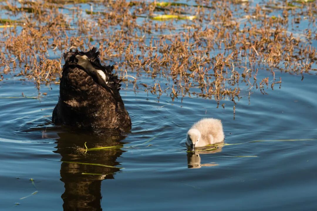 不论台风、烈日还是暴雨,黑天鹅夫妇都会日夜坚守,直至雏鸟出壳;整个孵化时间持续35~40天。研究发现,经历完一整个孵化期后,亲鸟由于操劳,体重会减轻1~1.2千克,喙的颜色变浅,毛色也变灰暗。