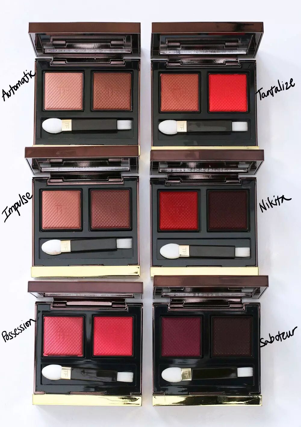 Tom Ford的双色唇膏盘,一共6个色号,从裸色到姨妈色应有尽有,能够匹配深浅不一的各种肤色。每盘包含一明一暗两个颜色,可单用也可叠加调配出层次分明的唇色。高手们还可以利用颜色的明暗对比来修饰唇型。Tom Ford官方对唇膏的描述是“高显色度”和“哑光丝绒”。从试色来看,发色的确十分饱满,丝绒感并不算很强烈。