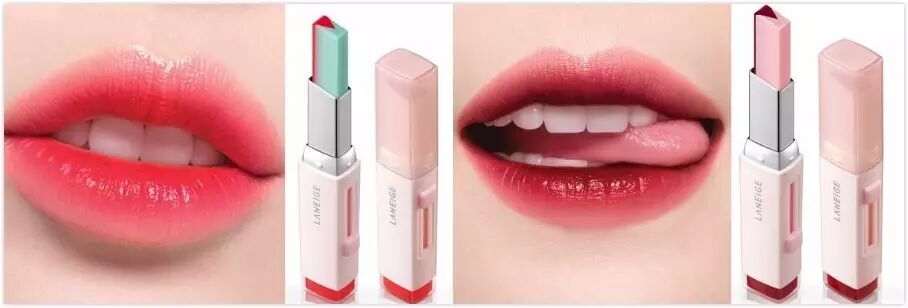 手上没有一只兰芝双色唇膏,都不好意思说自己用过韩妆。2017年,兰芝请来了在《举重妖精金福珠》中有着亮眼表现的李圣经代言全新双色唇膏。全系列共8色,配色充满少女感,各种淡粉桃红,清新亮丽。双色的设计从以往的直线切割变成了V型夹心,这样涂出来的效果会更自然好看。