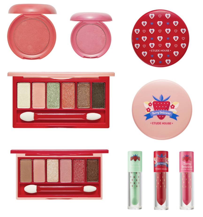 Etude House(伊蒂之屋)今年的春夏彩妆以草莓为主题,推出了2款6色眼影盘、6款染唇液、2款气垫粉底和2款腮红。其中一款染唇液为变色唇彩,采用了预热变色的工艺,令原本绿色的染唇液变成红色。我去专柜试过,绿色这款涂到手上的时候是紫色的还带闪粉。上嘴之后闪粉就不见了,颜色变成很好看的紫红色。不挑肤色,黄皮白皮用着都显得气色好。
