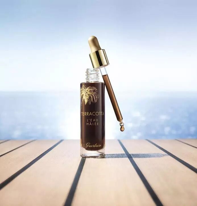 又是一个古铜色的系列,包装风格是GUERLAIN一贯的奢华贵妇风,看着就觉得很美,恨不得整套买齐了就冲到沙滩晒日光浴。系列中有2款古铜粉、2款唇膏、1款古铜液。这款古铜液具有滋润皮肤的功效,全身可用,易于涂抹且不脱色,不会令衣服沾上颜色。