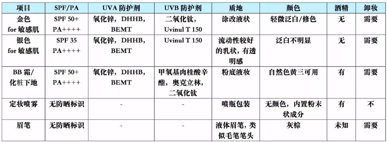 然后,我们来看看2017年安热沙新品的汇总对比。