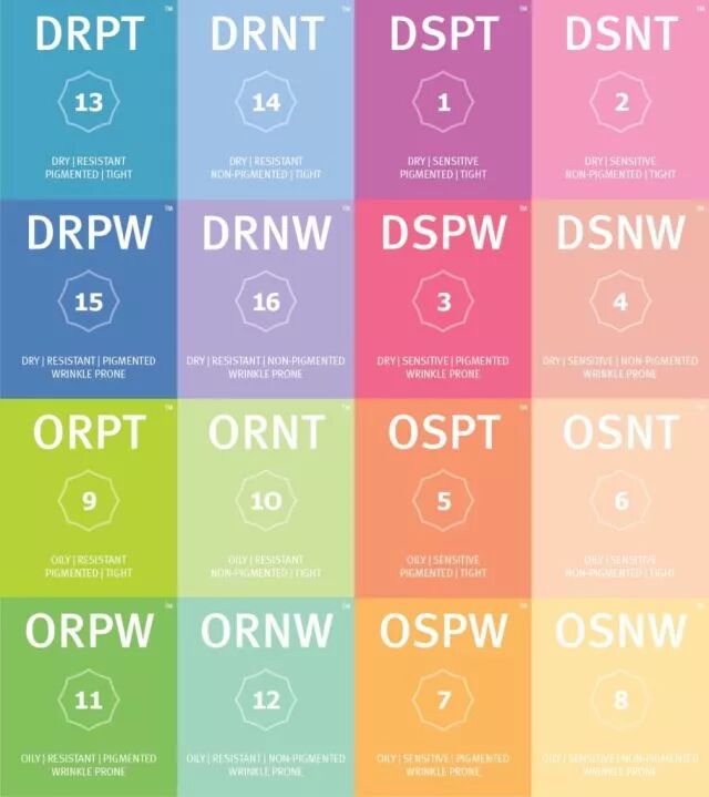 Leslie Baumann的16种皮肤分型(Skin Type Solutions)。