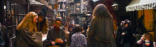 哈利第一次来到对角巷,街上的巫师都穿着长袍