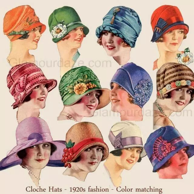 女性日装的标准配置是帽子,直到六十年代之前,不戴帽子就出门都是很不体面的,如香奈儿所说“帽子是人类文明的标志”。二十年代的女帽和服装一样出于特别的转型时期,在此之前,女帽都流行夸张华丽的造型,女性的头部和发型就像是作为帽架而存在的。
