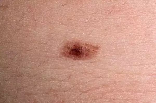 痣细胞位于表皮和真皮层交界处,通常痣是平的,不突起,颜色在棕色到黑色之间。