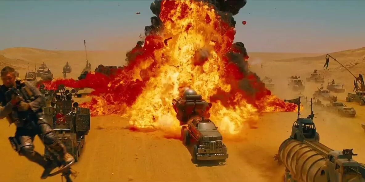 片中有大量燃烧、爆炸的镜头,想象一下热浪滚滚的沙漠上柴油滚滚燃烧的感觉