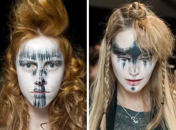 现实中也不是没有:以搞怪和不走寻常路著称的“西太后”Vivienne Westwood就曾在2011年的巴黎时装周上,让模特画起了非常类似的妆