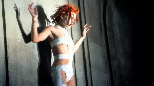 其实,破布式的衣服也不是第一次出现在电影里,我能想到的很有名的还有《第五元素》中女主角Leeloo一开始穿的那件: