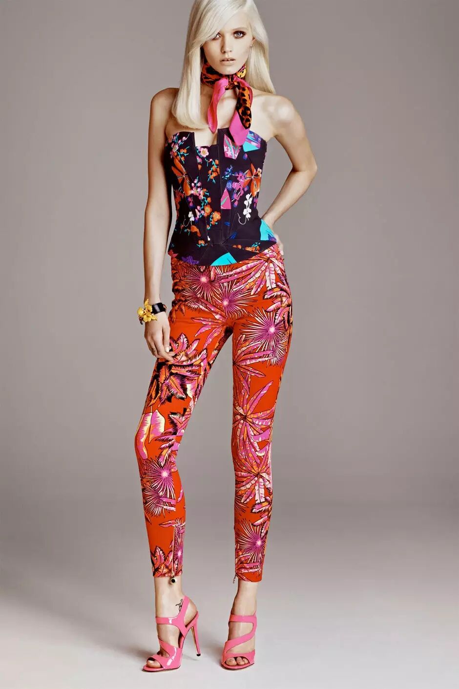 Abbey为Versace for H&M拍摄的lookbook。怎么样我知道你们这些凡人穿出来只会是东北大花袄!