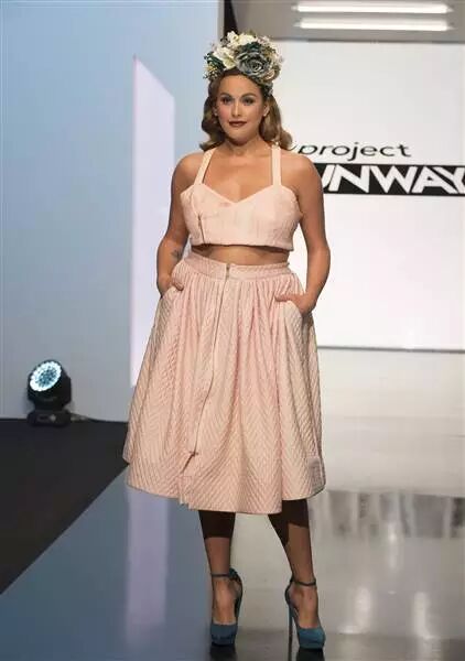 当她牵着穿着浪漫轻纱和光亮华丽的塔裙压轴模特走上台的那一刻,胜负已定。她成为了第一个获得The Project Runway冠军的大码设计师。