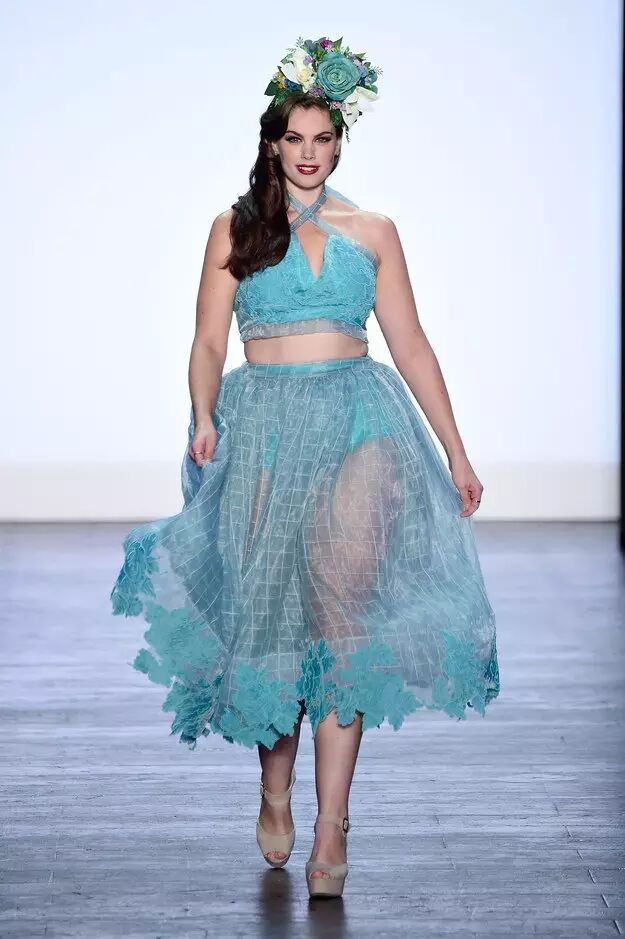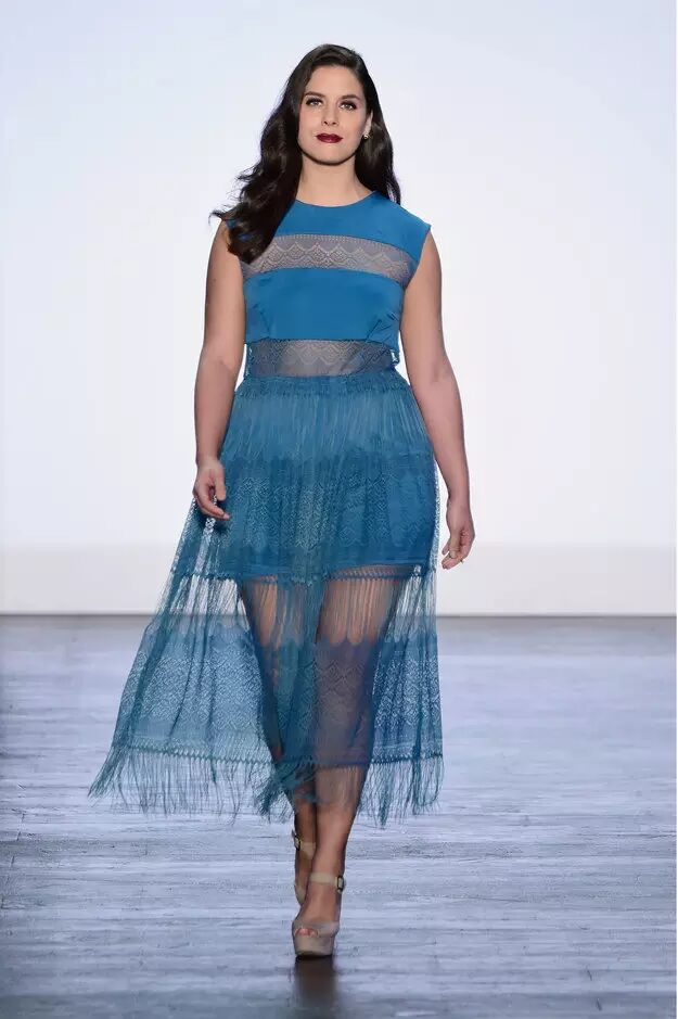 Ashley不愿姑娘们只能这样憋闷地过着。她给大码的姑娘们设计专柜里不会有的衣服——大胆的色彩、新颖的剪裁,无处不在的时尚元素。复古、薄纱、松紧有致,这些我们认为给“麻杆”们的衣服,大码模特照样穿得美。