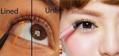 接下来是我认为小眼内双睫毛稀疏的人应该学习的技能——画内眼线。有内眼线能够显得虹膜更大,眼睛更有神采。它还能模拟出睫毛根部比较浓密的感觉。再有就是,过粗的外眼线会占据我们宝贵的双眼皮褶皱的范围,一不小心又看不见双眼皮了,反而显得眼睛更小。而且内眼线也最容易让直男以为你没有化妆哦~