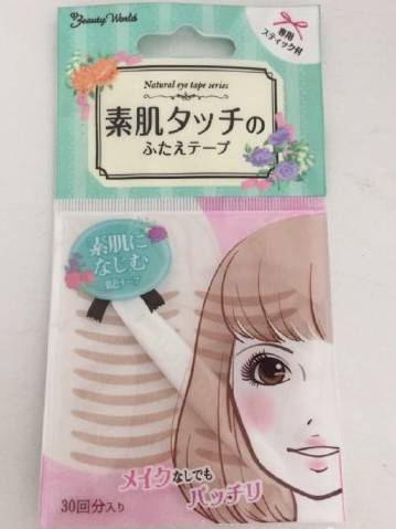 这是一款蛮流行的日本的肤色布面双眼皮贴,素眼贴着也比较隐形,但是单价较贵。如果手艺好,可以买3M的肤色医用隐形胶带自己剪,一级棒。