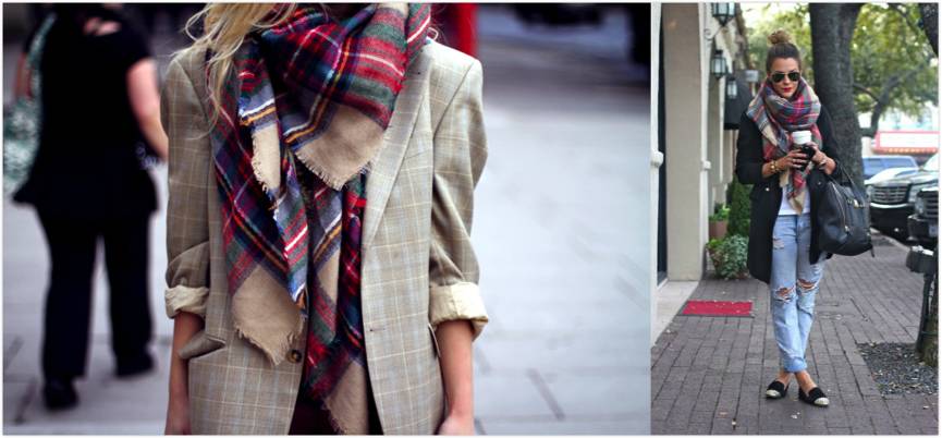 去年Zara有一款超级流行的格纹围巾,在街上时不时就会看见戴它的妹子: