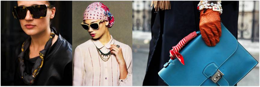 接下来就是围巾另一个重要的作用——装饰性。为了凹造型而系的围巾,例子举不胜举,比如用小方巾当项链,用丝巾扎辫子,用围巾当腰带,用围巾系在手提包上,等等。我自己会用围巾当作拍照背景,铺在被子上当装饰,系在行李箱上方便识别……