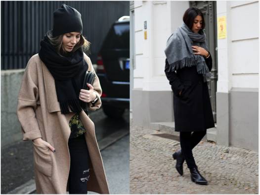 下面街拍中的披肩搭得很养眼,率性时髦。我们发现,她们都利用了下半身穿着简单修身的原则,以平衡上半身的宽大。同理可以想,要是咱们冬天穿着厚重的大衣,再披上一块大大的厚披肩,可能会显得太臃肿没型(除非你有模特一样的细高线条)。