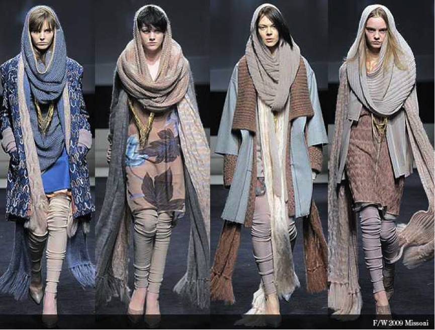 Snood作为一种连接传统与现代的配件,曾在时装秀场上频繁露面。上图Missoni的造型让人有一种穿越回了古代西方的错觉。