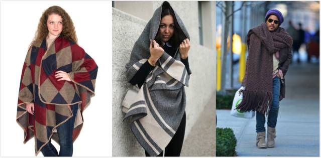 上图左是把暖和的毛毯随性地一批当作斗篷使用,右两图则是更有格调更时髦的单肩披挂的方式,但是不怎么在日常生活中使用。