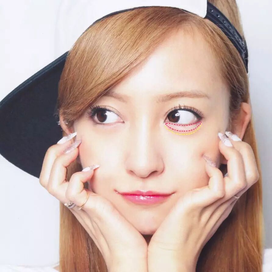 在这里,为了让大家可以更简单明了的看懂卧蚕的画法,以泪袋妆的代表人物——tomochin板野友美为例,简单的讲解一下如何使用窝蚕笔:
