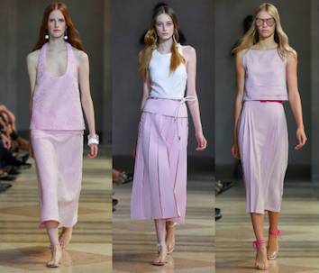 不爱穿裤装的朋友,你们的选择就更多啦,裙子的设计更加多样,总能找到一款你喜欢的。今年的各种春夏秀上,出现了许许多多梦幻的粉色裙子,以品牌Carolina Herrera为例,它家今年的粉色系裙装设计才用了柔和到不行的浅粉色和粉紫色,裙子在飘逸柔美的同时也融合了充满现代气息的简单优雅,绝不会像一只只俗气的花蝴蝶。