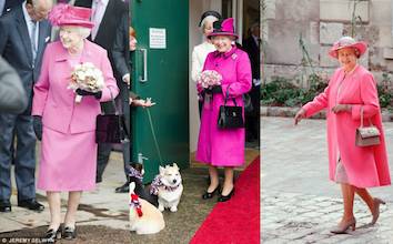 正面例子是英女王。虽然女王殿下经常穿粉红套装,但是她绝不会全身都是粉色,总是会用颜色更素雅沉稳的包包和鞋子等来达到颜色的平衡。