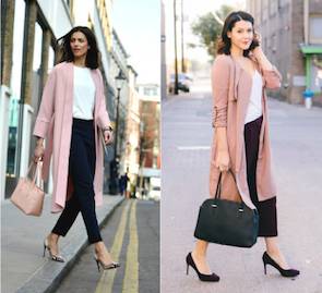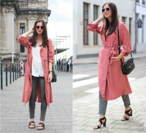 稳重端庄的粉色,搭配经典干练的风衣版型,就具有成熟风范,上班穿妥妥的。