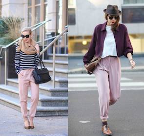 办公室着装氛围比较正式的朋友,可以选择西裤类型的长裤。粉色的西裤比起常见的黑、灰色、米色有趣很多,让上班都有了些小不同,小期待(好吧其实我们都不想上班)。而且说不定还能够为你招来桃花运哟~。