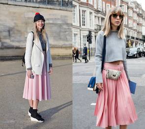 接受度很高的半身百褶裙,通过材质和褶皱宽度的改变,能够带来不一样的风格,少女感或淑女感都可以用它实现。