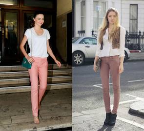 腿美的妹子们,可以放心大胆穿着紧贴腿部线条的小脚裤,身材好掖着藏着多可惜!不过选择裤子时,舒适度很重要哦。贴身的同时带有弹性且柔软的裤子,是最佳选择。这里正好安利一下Topshop的弹力贴身牛仔裤,真的很好穿(虽然不一定有粉色)。