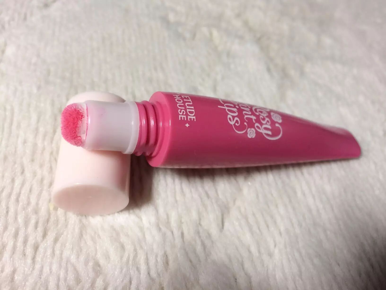 Etude House的绒面气垫染唇液对于当时来说的确是新的设计风格。但是嘤嘤发现它其实也是有缺点的,例如包装的塑料壳太硬,不方便挤出液体。图片:mogujie.com