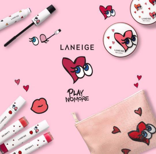 兰芝则是和韩国设计师品牌PLAYNOMORE合作。限量版的气垫BB和水滴唇膏配上大眼睛的logo设计,摆脱兰芝平时素色基调。