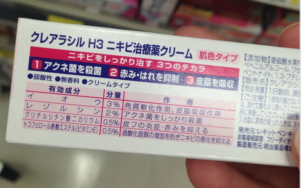 日系开架祛痘膏的代表。主要起效成分布洛芬吡甲酯イブプロフェンピコノール,3.0%;异丙基甲基苯酚イソプロピルメチルフェノール,0.3%.