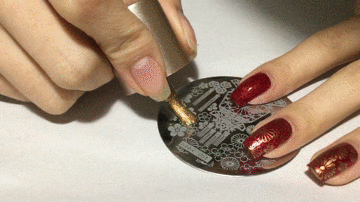 3. 印花时要看到印章和指甲接触的这一面。不要背对着印章盲印,那样印歪了都不知道。